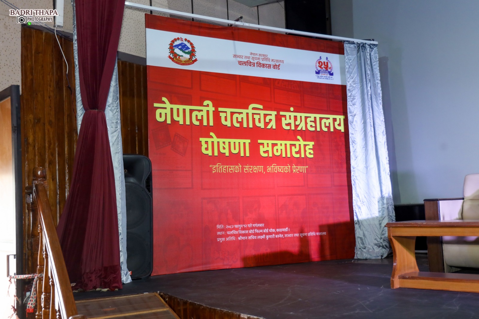काठमाडौं, १२ फागुन २०८२ — नेपाली चलचित्रको इतिहास, कला र प्रविधिलाई भावी पुस्तासम्म सुरक्षित रूपमा संरक्षण गर्ने उद्देश्यसहित चलचित्र विकास बोर्डले नेपाली चलचित्र सङ्ग्रहालयको औपचारिक शुरूवात गरेको छ। मंगलबार बोर्डको प्रेक्षालयमा आयोजित विशेष कार्यक्रममा सञ्चार तथा सूचना प्रविधि मन्त्रालयका सचिव श्री लक्ष्मी कुमारी बस्नेतको प्रमुख आतिथ्यतामा सङ्ग्रहालय उद्घाटन गरिएको हो।