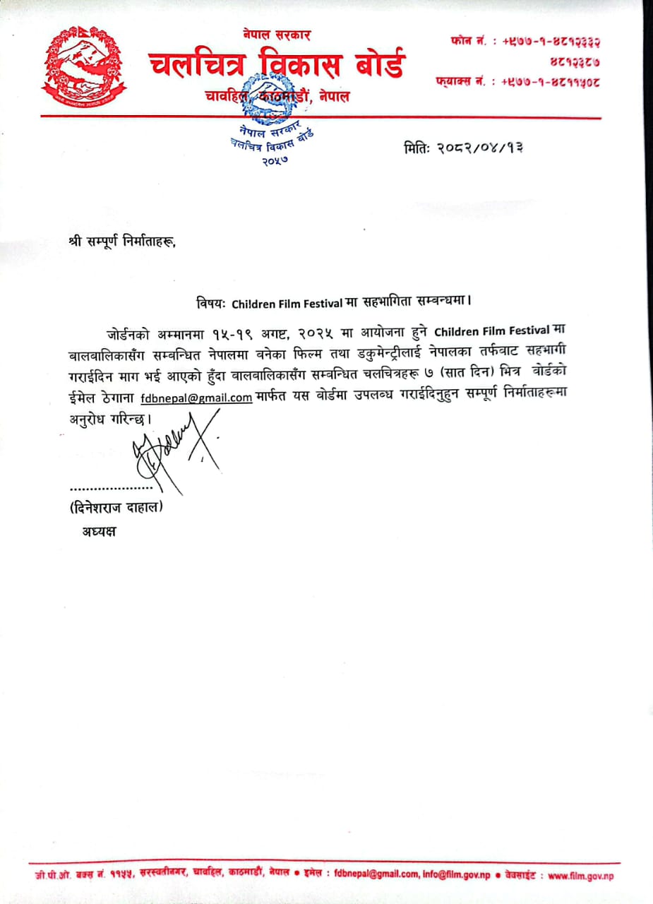 बालचलचित्र महोत्सवमा सहभागिता सम्बन्धी सूचना