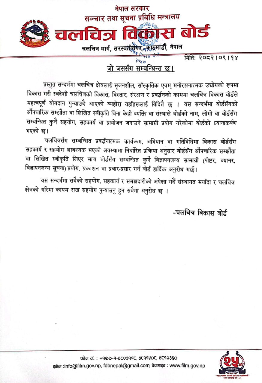 | स्वदेशी चलचित्रको डिजिटाइजेशन कार्यमा आबद्ध हुन आवेदन पेश गर्ने सम्बन्धी सूचना